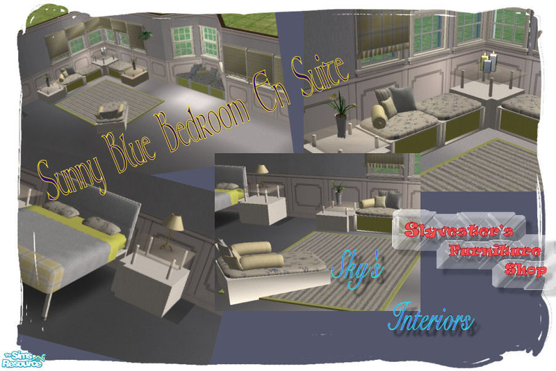 A bedroom en suite with hues of sunny yellow and peaceful blue. Made with beauitful yellow & blue moire, blue & yellow plaid & blue flower toile fabric. This set includes a matching wall and carpet.
