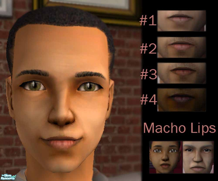 Tired of those smooth lips your male sims have? Find them a little too feminine for you hunks? Well here's a lip color that will solve your problems instantly. Macho Lip Colors come in 4 shades that compliments the whole range of skintones, giving your sims a little more rugged look.