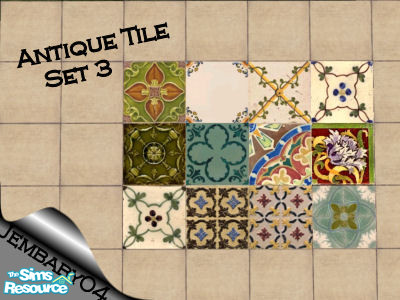 Old antique tiles to give your sims' homes that extra homey touch they deserve. All hand-painted and original, these well-worn and chipped tiles are for the sim looking for character... not perfection. TSRAA Member