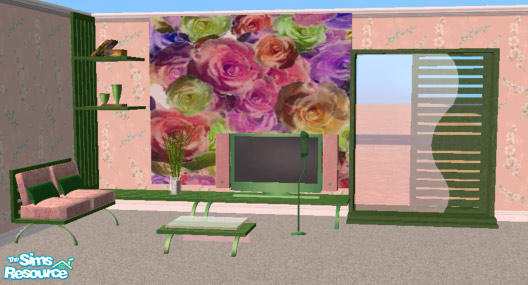 Included: recolors of Sunair meshes - 2 coffee tables, wall shelf, tv, speaker, plant, painting, sofa, loveseat and sliding doors.