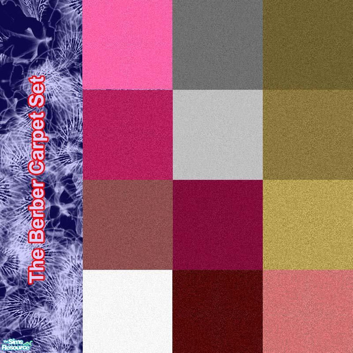 The latest simmyfan2852 set is here! 12 brand new berber carpet floors to decorate your sims homes or businesses!