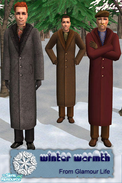 Sims 2 — Winter Warmth for Him by daring_dave — Warm overcoats,colorful scarves, matching slacks and shoes. Since I don't