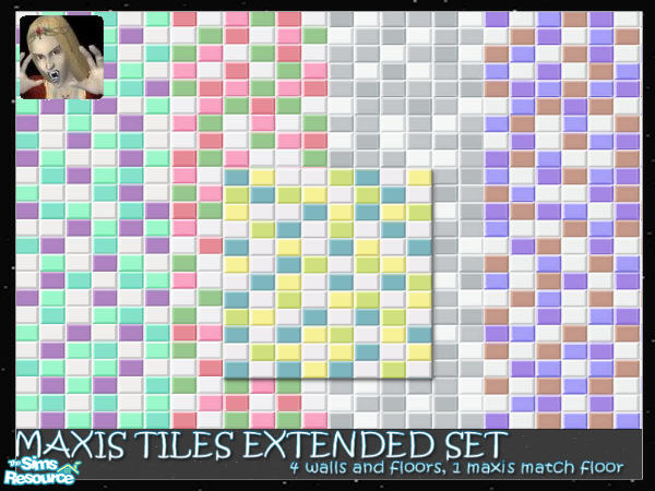 Sims 2 — Maxis Tiles Extended by c_literati — I loved the new tiled walls and floors in Pets, but I wanted more, so I