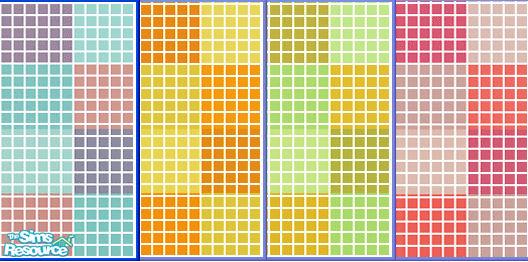 Sims 2 — High Tiles Set by s00z — Four partially tiled walls with matching tiled floors, suitable for kitchen or