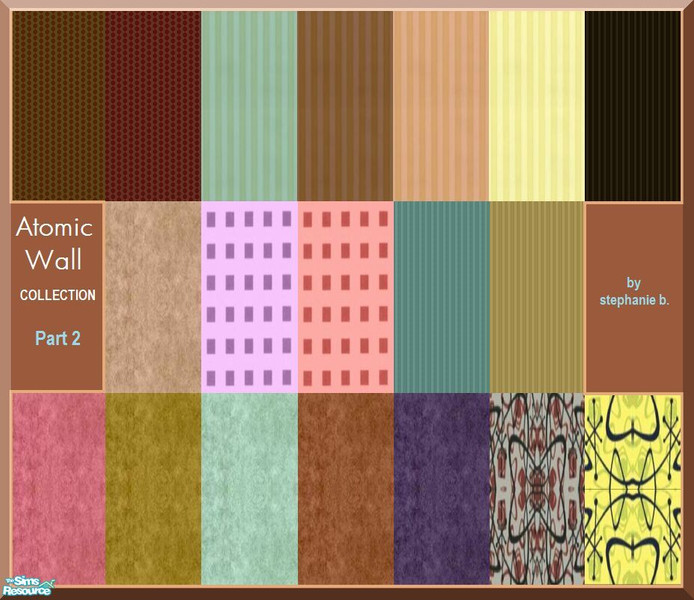 This set of 19 walls is 1 of 2 sets created to accent the Atomic furniture in the game. There are 35 walls total in the Atomic Collection. Be sure to download both parts and the Atomic Floors. Enjoy!