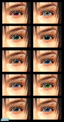 Just the boost your sims need to look confident and serious. Natural wet looking eyes in 10 colors. Black, Silver, Grey, Purple, Red, Brown, Light Brown, Green, Light Green, and Blue. They look exceptionally well on male sims, as you can see from the pics. I hope you like them. -Sheyza