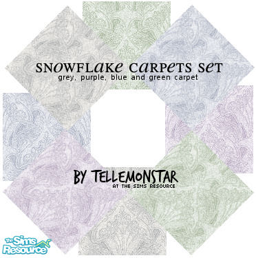 All four of my \'Snowflake Carpets\' - pastel colours in blue, green, grey and purple. They\'ll look great with your stylish Sims decor. No expansion packs needed.