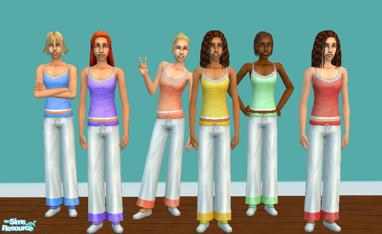 Six recolors of the pink teen pjs that came with the Teen Style Stuff expansion pack. Perfect for laying around the house, or for pjs. Can be used as everyday clothes, or pjs.