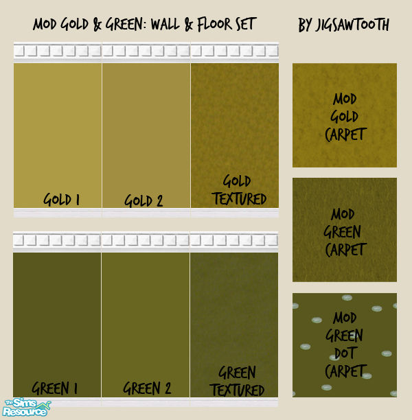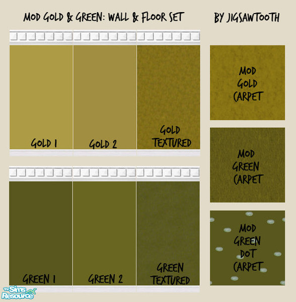 Bold Green and Gold walls with gorgeous crown molding. Plush matching carpets. Matches my Mod Gold bedding, curtains and art.
