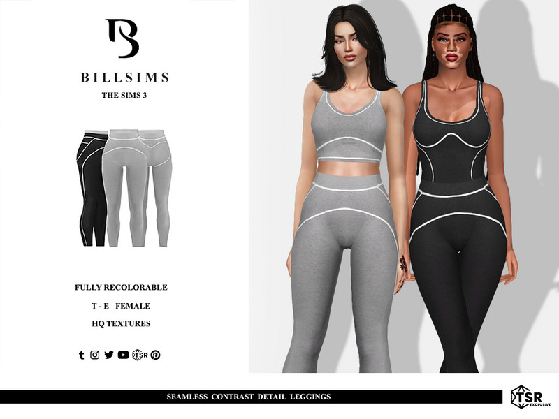 Sims 3 — Seamless Contrast Seam Leggings by Bill_Sims — These leggings feature a seamless fabric with white contrast