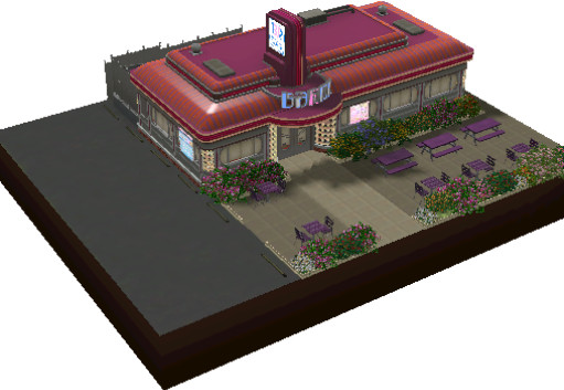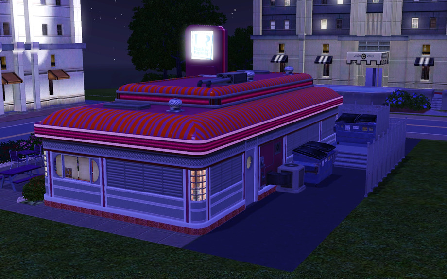 This is a remake of the original ingame Diner rabbithole (Working) now with the proper signs and a small outdoor servingarea. Lot created by Searon ; Credits to kopple36 @ http://www.modthesims.info/download.php?t=405981 for the reskinning of the buildings.