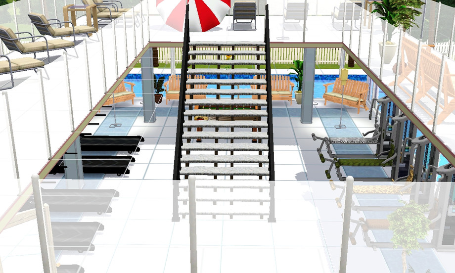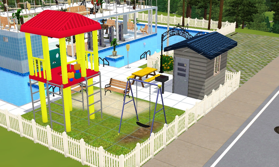 A beautiful place for everybody. Includes a chillout-floor on the top and a sports center below with toilets and showers. Everything is surrounded by a pool. Small playground for the kids. Pay booth. BBQ. Tropical landscaping. Parking lot for 5 cars.