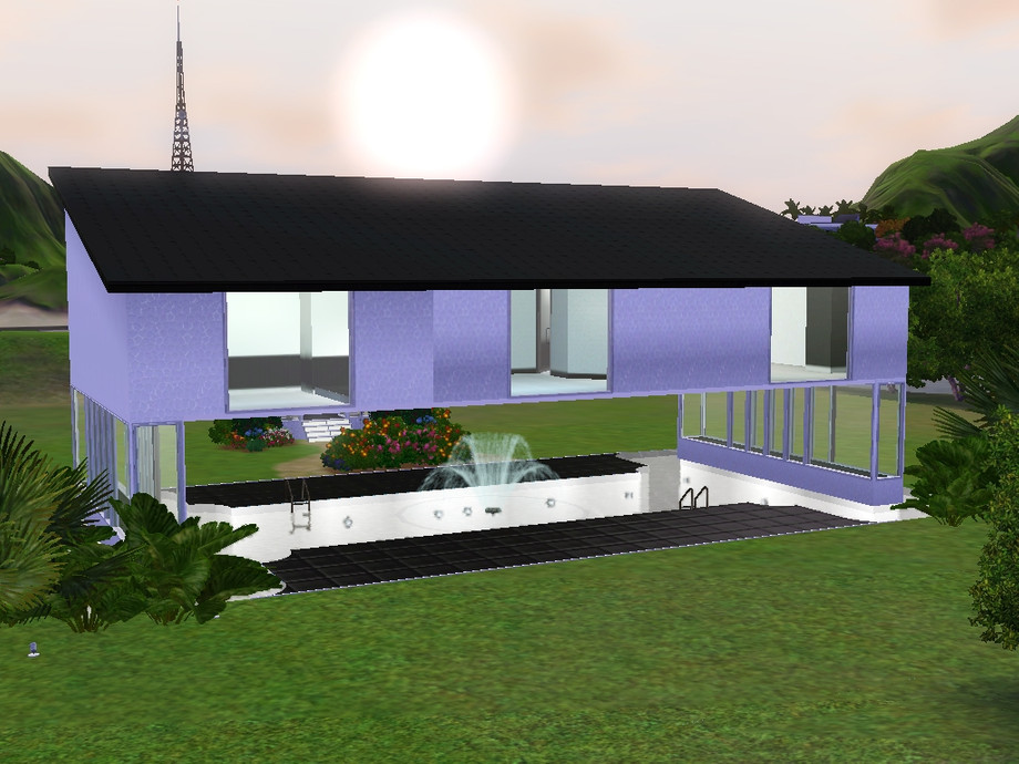 This is a modern 2 bedroom house, with 2 en-suite bathrooms, Stairs at the ground floor leading up to the front door. Its a beautiful lot with beautiful views, there is a swimming pool that goes around the house! Perfect for a couple or a family!