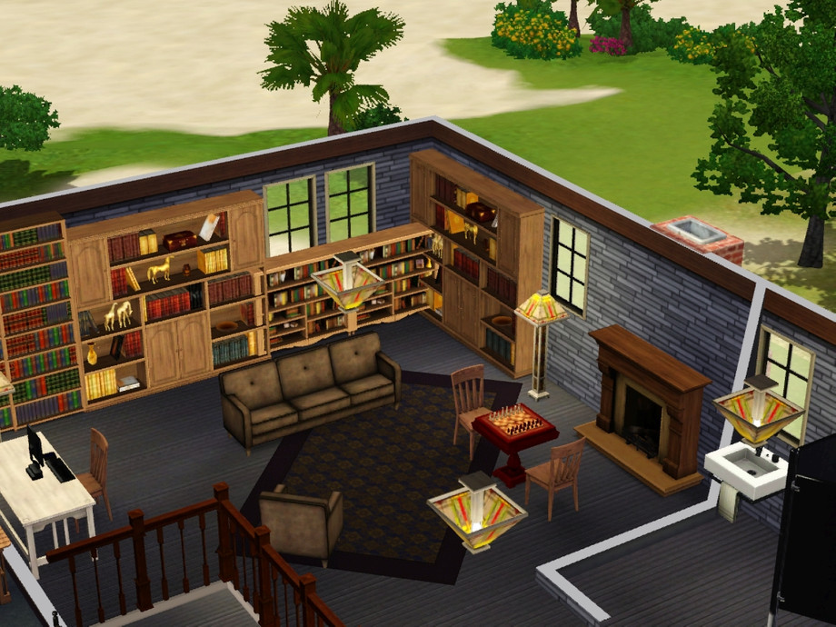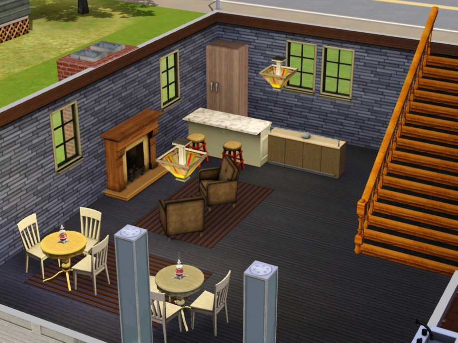 This is part of my custom Fishhead Bay town, using a cleaned up sunset valley for the base. It is a completely custom built town, except for a few community buildings (ie. science center etc.) The town is a working fishing town with a small tourism section. This is the working fishers warf. It includes a small pub and lounge, exercise area, dance hall, and boarding house for your homeless sims. One room even has a crib for a homeless mother. There are also picnic benches and a BBQ on the beach. It is meant to go on the 455 suunyside blvd. lot.