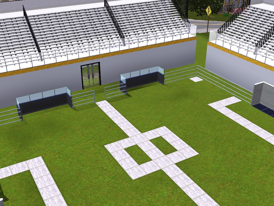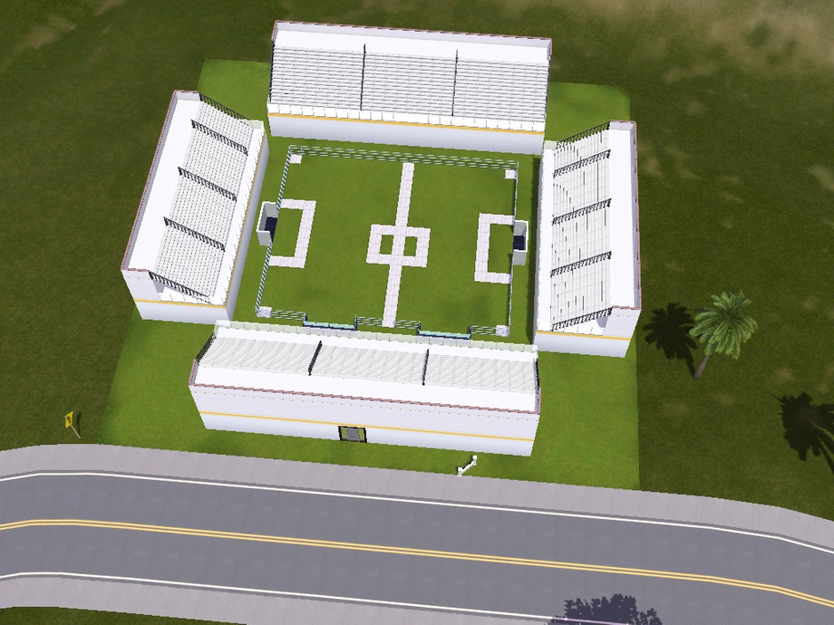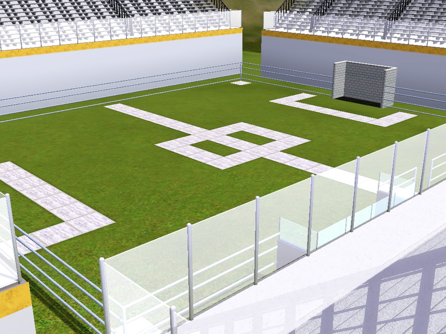 hello,my new work stadium,its look but I try make something specially,i made that stadium like community building with white wall,i put seats with stairs,line on the field without white stone,and goals wihout stone wall and green grass