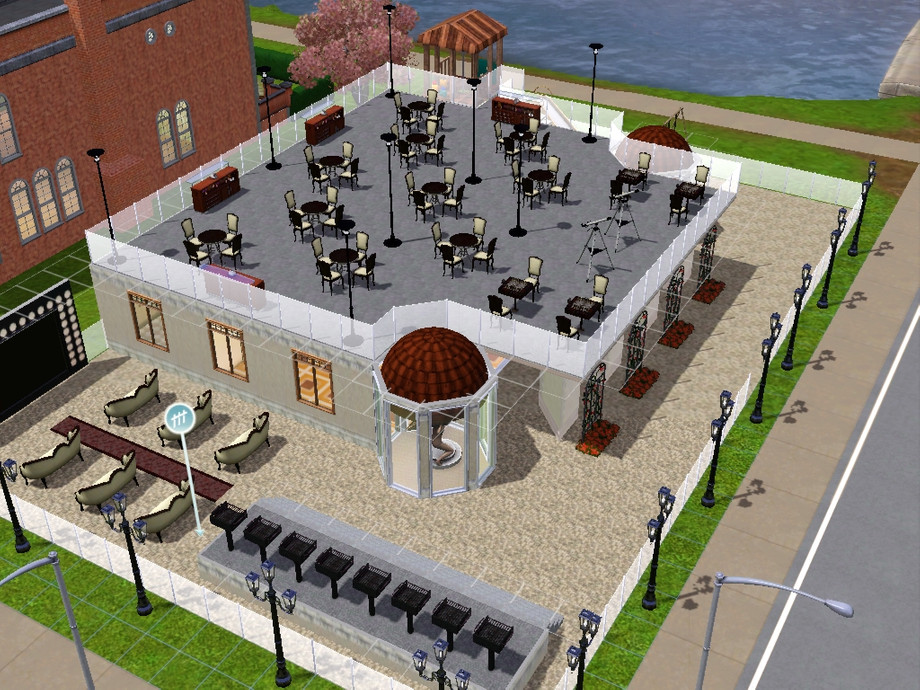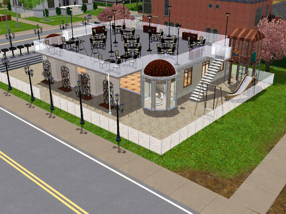 A small lot complete with food, bars, a theater, bathrooms, a game area, a lounge, and even a play area for the kids!