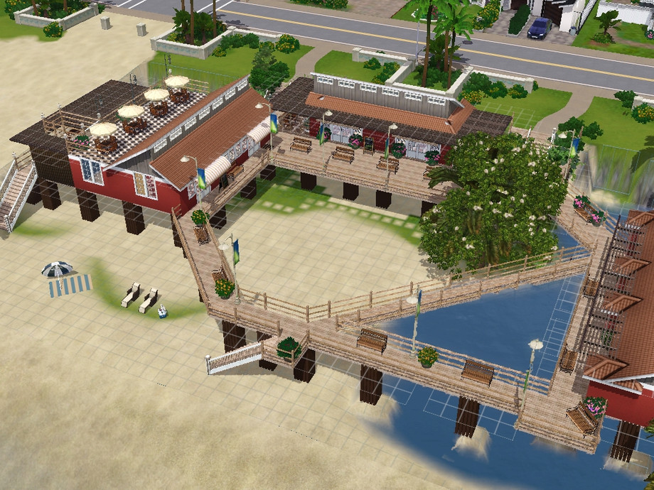 The Old Pier Beach has been given a breath of new life. Beautiful piers and look-out spots provide a great view of the ocean for the Sim's day and night life with outdoor entertainment decks. Piers now include multiple resturants, bars, and shops, as well as a salon and tatoo polar so Sims can always looktheir best. And of course, there's the warm golden sands.