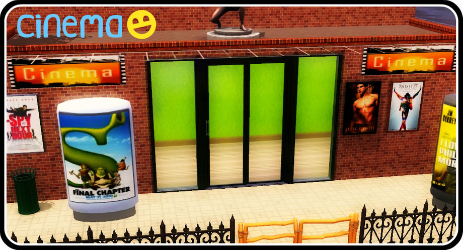 This Lot has many different places to enter. It has a park, restaurant, bar, art & book centre, cinema, leisure Centre, dance studio, office and boutique. Parking spaces are available. Families and friends of different ages can enjoy this place at any time. I am really pleased with this lot, I made if from scratch and was inspired to make a lot like this by a user on TSR, I couldn't download theres because I didn't have a certain game but I like this one alot.