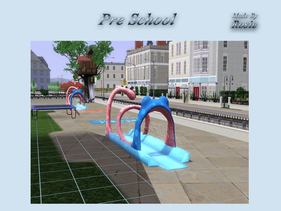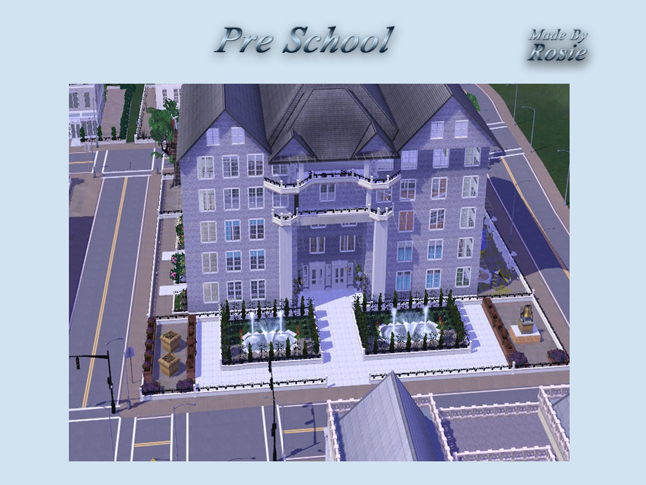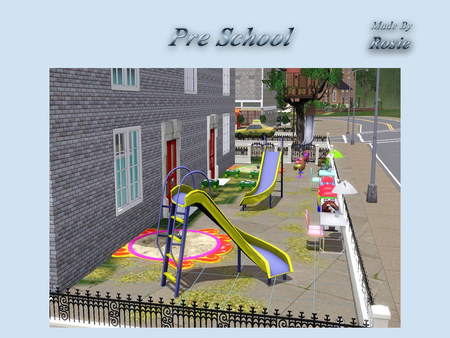 this is the Pre School which has the rabbit hole, I have built around it to make it look more like a real school in the community, it has the same gray slate roof as the school for the gifted, as they look good together please enjoy.