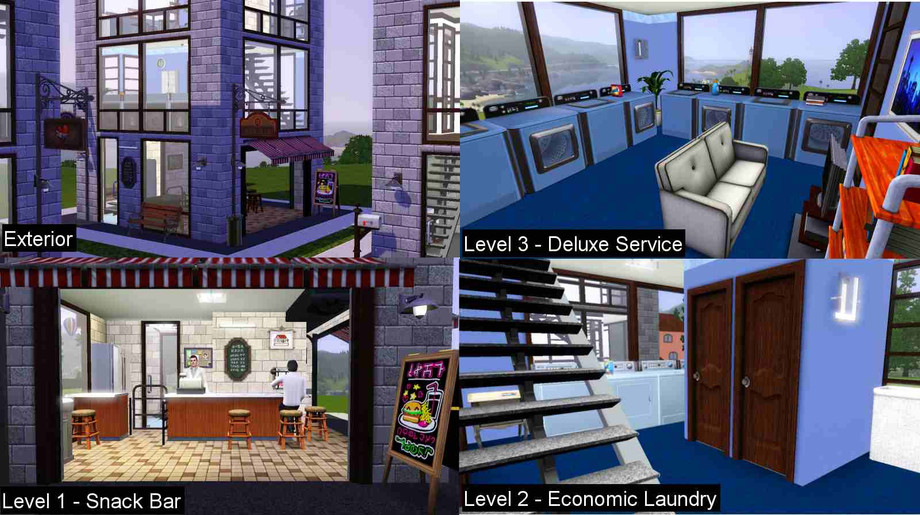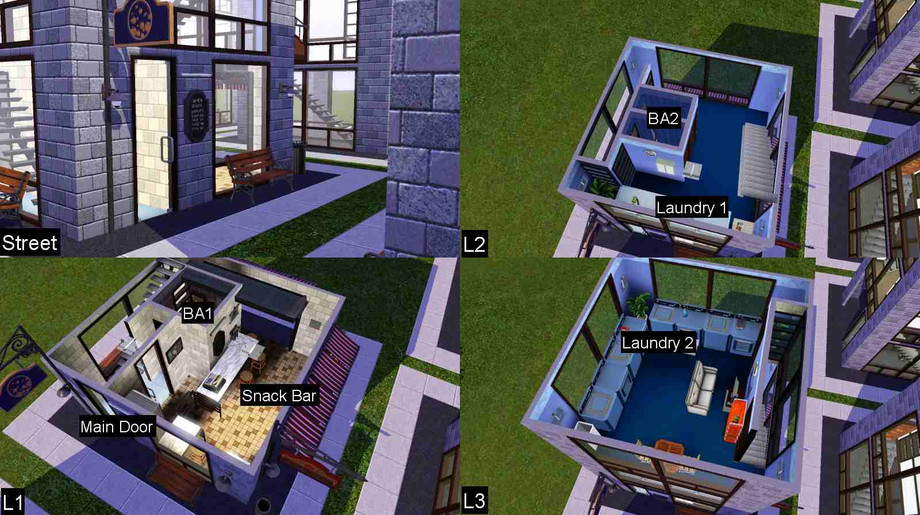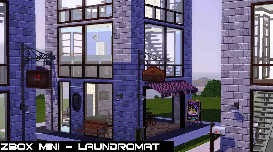 Lifestyle in a 6x6-footprint box on a 10x10 lot with a touch of Zen. Laundry services for those who can't afford it at home. Watch TV or read a book while you wait for your laundry. Alternatively, have a meal at the snack bar at ground level and socialize with other laundromat users. Part of zBox Mini series.
