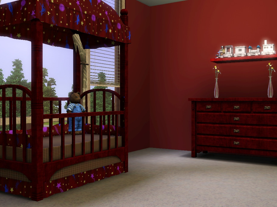 Nice log-cabin type of house for a family of four (one including a baby, but you can always change the baby's bedroom to be for a child or an adult if you don't have a baby in your Sims' family.)