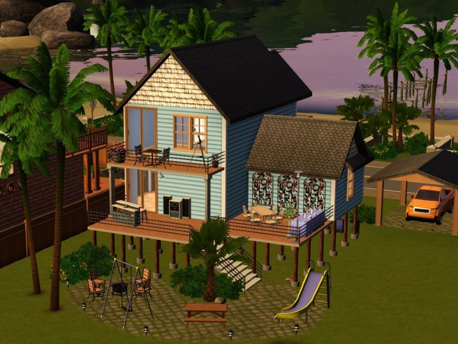A small 2-bedroom family house built on stilts near the coast. It features an office, stunning views and lots of outdoor space, including playground for the kids and a back deck for hosting parties. It's entirely playtested so hopefully you won't have any issues. To be placed by the coast in Sunset Valley on the 9 Sun Song Ave lot. This lot is base game only, no custom content