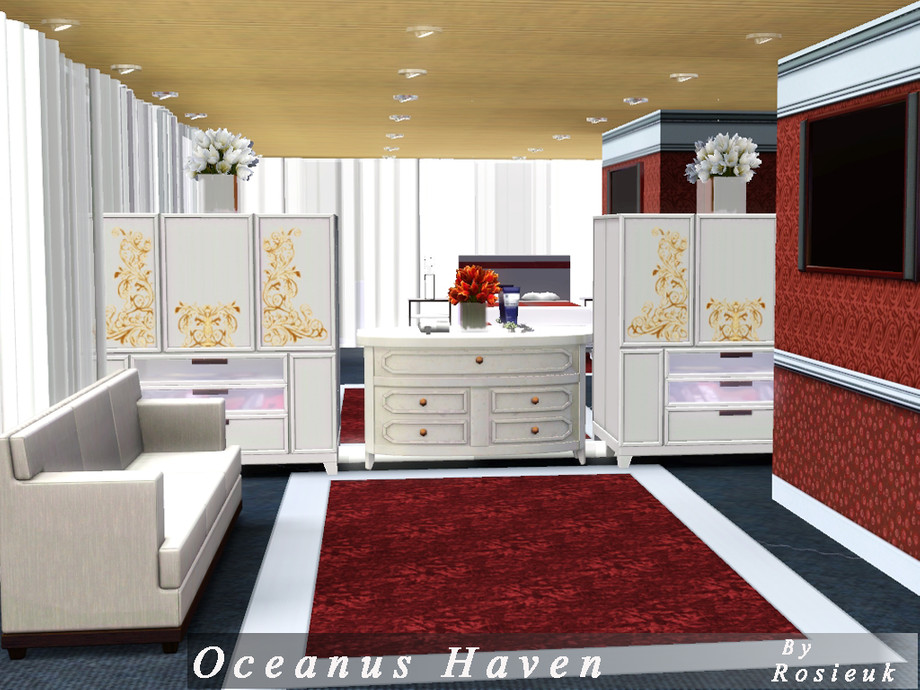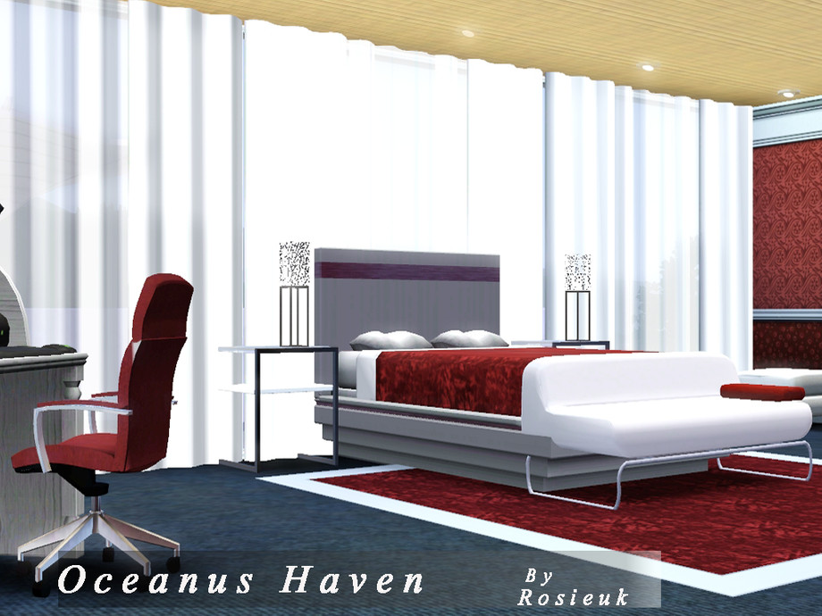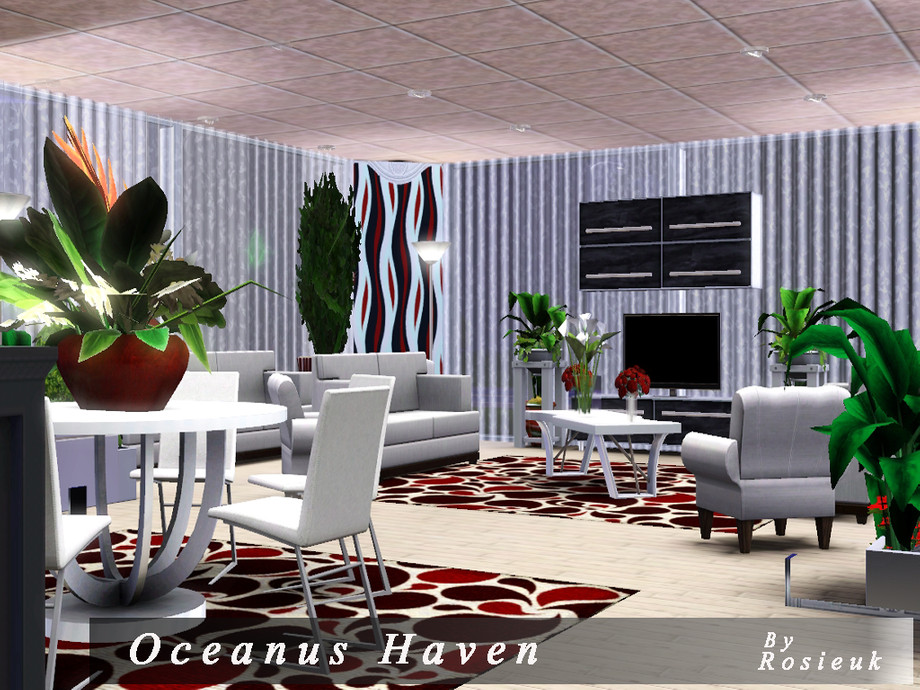 This beautiful home,has everything your sim's would need, there is a lovely Pool at the front of the house which glides around the side of the house, there are hot tub's that are under a wondeful Glass house, This home has three bedrooms,each with there own bathroom, A lovely sitting room, with through dinning room, and a beautiful open kitchen. All the ceilings are wood panelled with spot lighting.