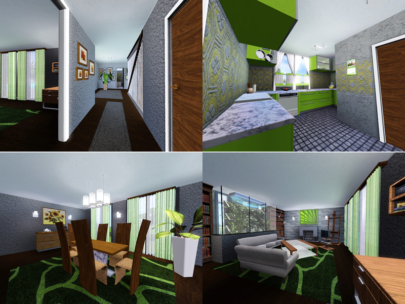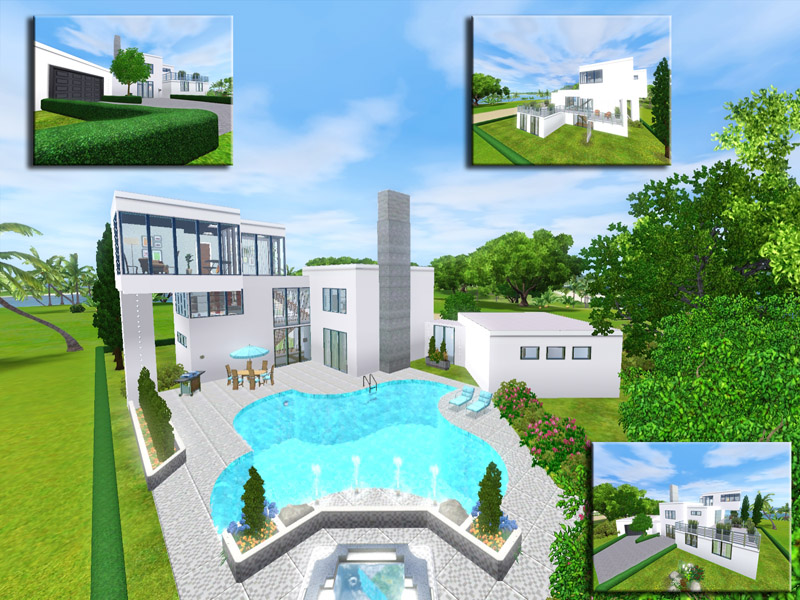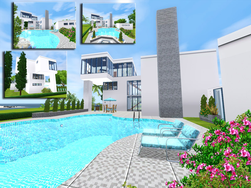 Stone by stone, brick by brick and so properly packed come your new sims home to you. Well stacked in bright color, modern and comfy, as well fully furnished and decorated. Details: Entrance, hall, kitchen, dinindroom, livingroom, 1,5 bathrooms. 1.Floor: Master-bedroom, 2 single bedrooms, bathroom, large balcony. 2. Floor: Hall with music-area, fitnessroom, bathroom. Outside: Garden, terrace, pool, whirle-pool, garage. Created by matomibotaki.
