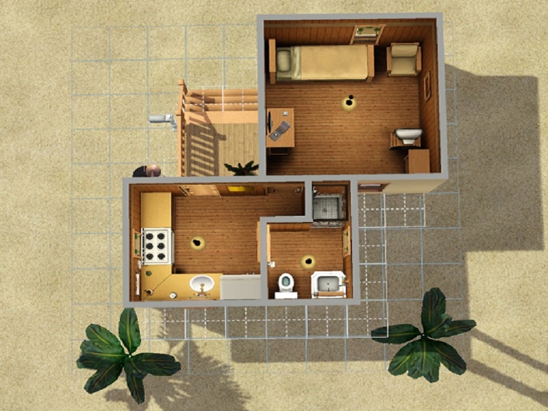 A tiny lot and a tiny house for those single sims who really don't want to pay much for their living space. Just enough room to live free on a sandy beach.