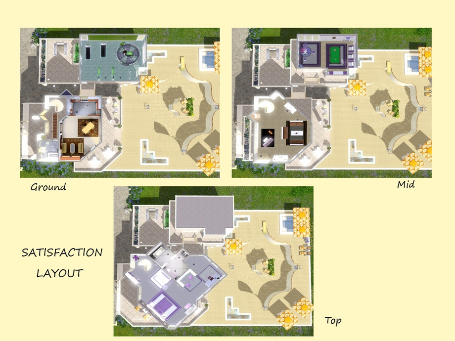 Satisfaction is base game compatible, but your game must be fully patched for best results. Although loosely based on the concept of an existing EA lot, this is still original work and you may not re-upload it anywhere or claim it as your own [you may do anything you like with it, within your own game LOL].
