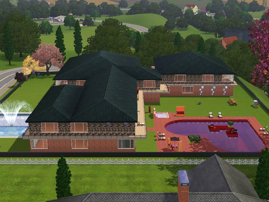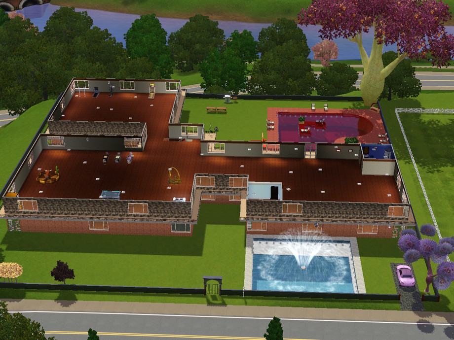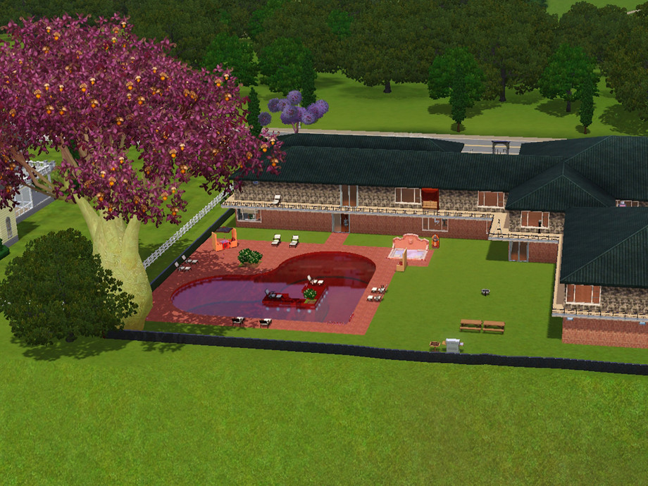 This spacious home is just the place for the ever expanding Sim. The open living space allows for any change without changing the design. There may only be two bedrooms, but with this much open space there could be more if need be. The heart shaped pool allows the romantic sim to show off in the presence of company.