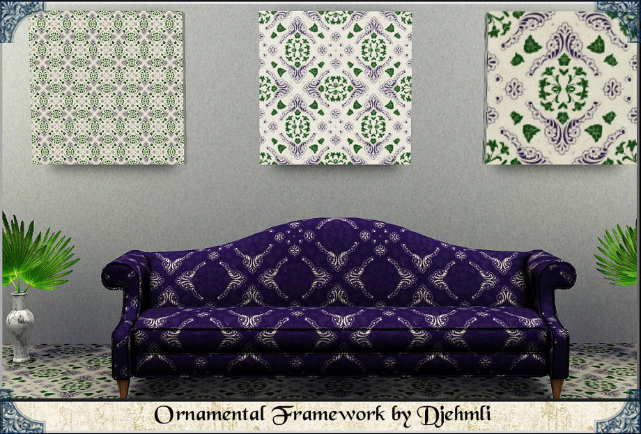 A ornamental pattern great for rugs or floors or upholstery. Three color-able palettes