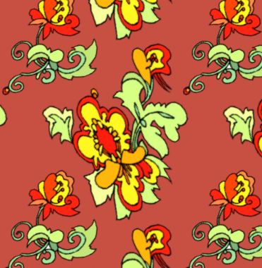 Okay . . so there isn't a rooster in the pattern . . not really . . but I swear I saw one, even though the actual pattern is made up of bright orange and yellow, 'recycled' paisley motifs.