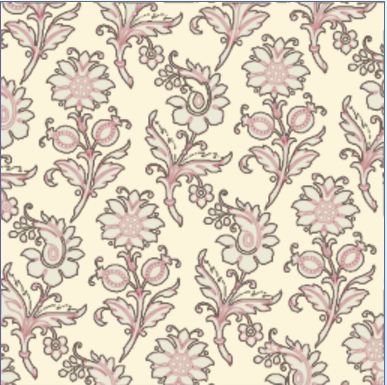 A subdued and elegant, allover repeat pattern featuring flowers and leaves in a pinky/brown tone on a neutral background.