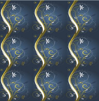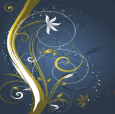 A distinctive, abstract vertical design on a midnight blue backing, featuring a golden tree with styled branches, a solitary flower and 'fairy dust'.