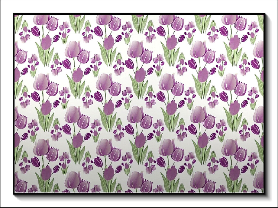 Fabric pattern: lilac toned tulips clumps in two sizes.
