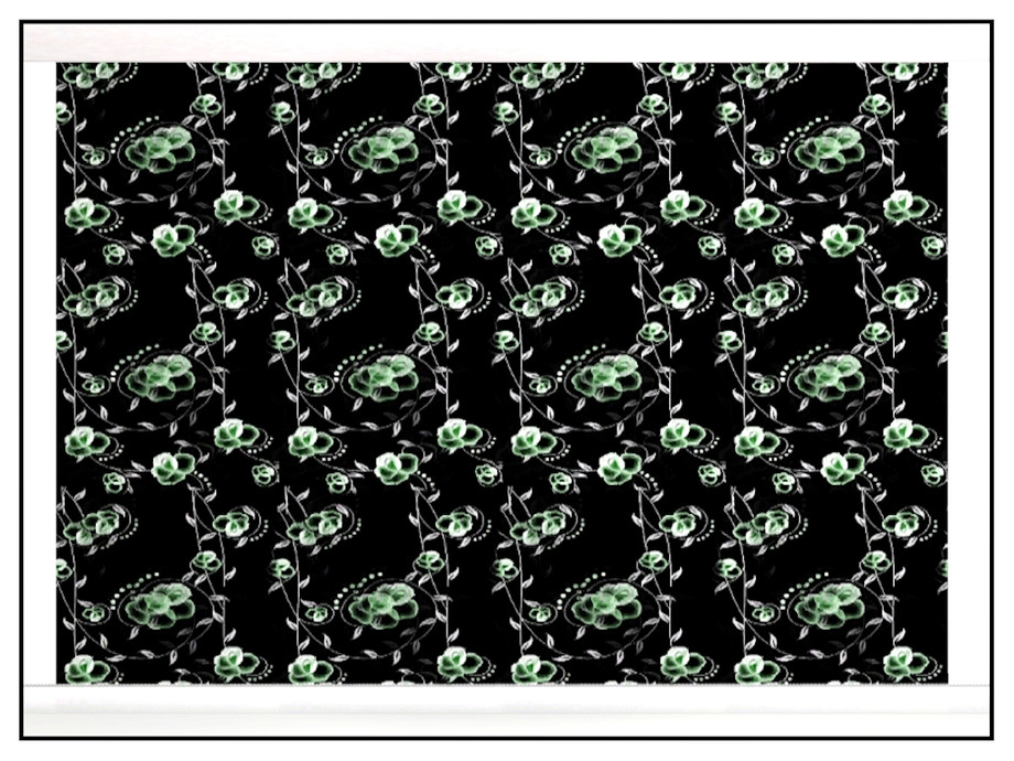 Fabric pattern: soft green/white floral in a ripple effect with leafy swirls.