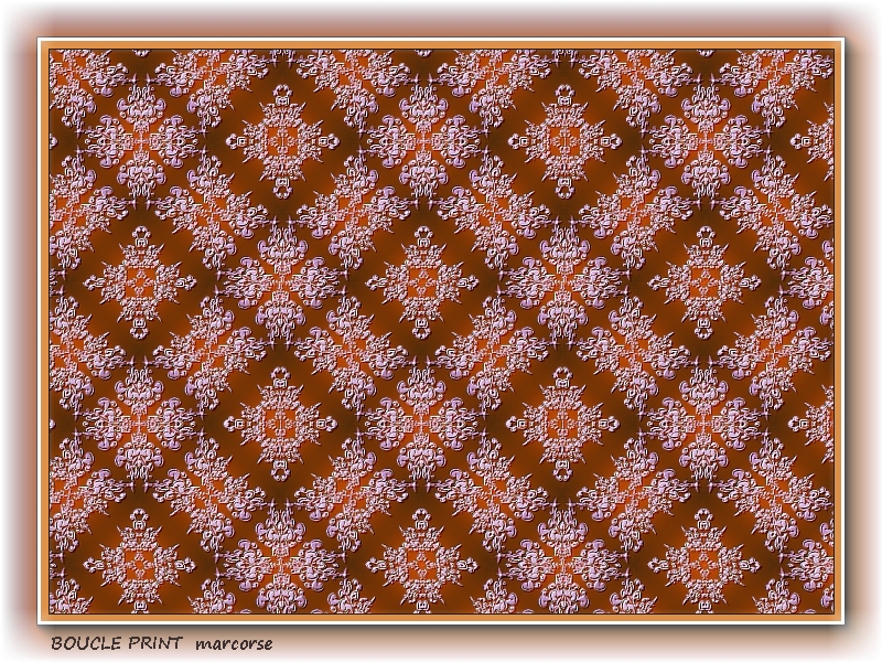 A boucle printed, lace fabric in shades of red/brown and white