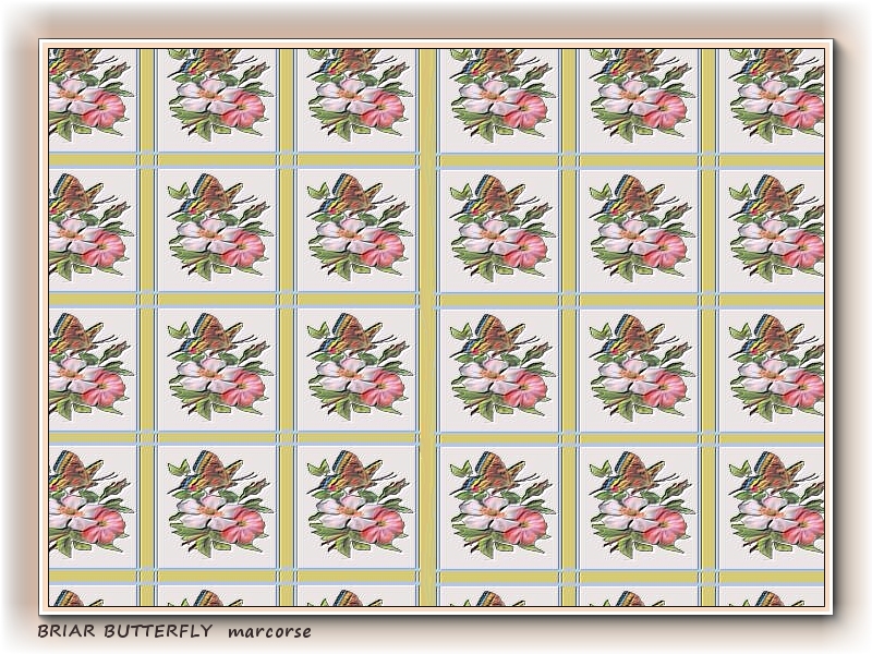 A faux tile pattern featuring briar rose and butterfly motifs.
