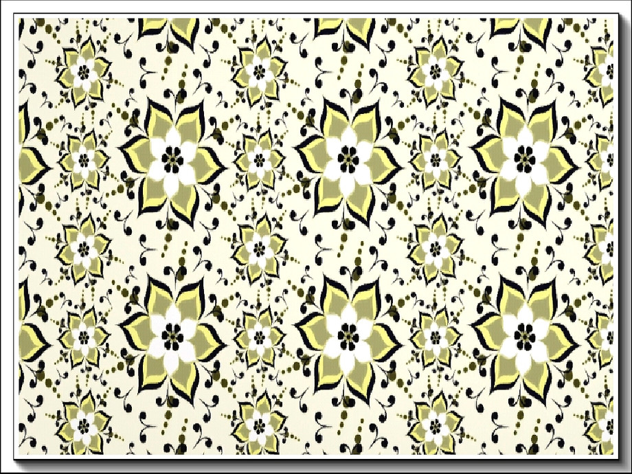 Fabric pattern: large yellow and blue flowers in a circling design around a smaller motif.