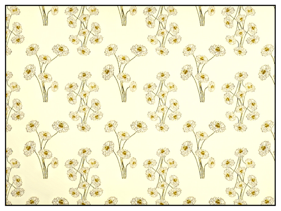 Fabric pattern: white strawflowers in a top and tail design on cream