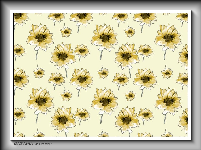 Single gazania flowers, yellow with a black centre, in a random repeat pattern.