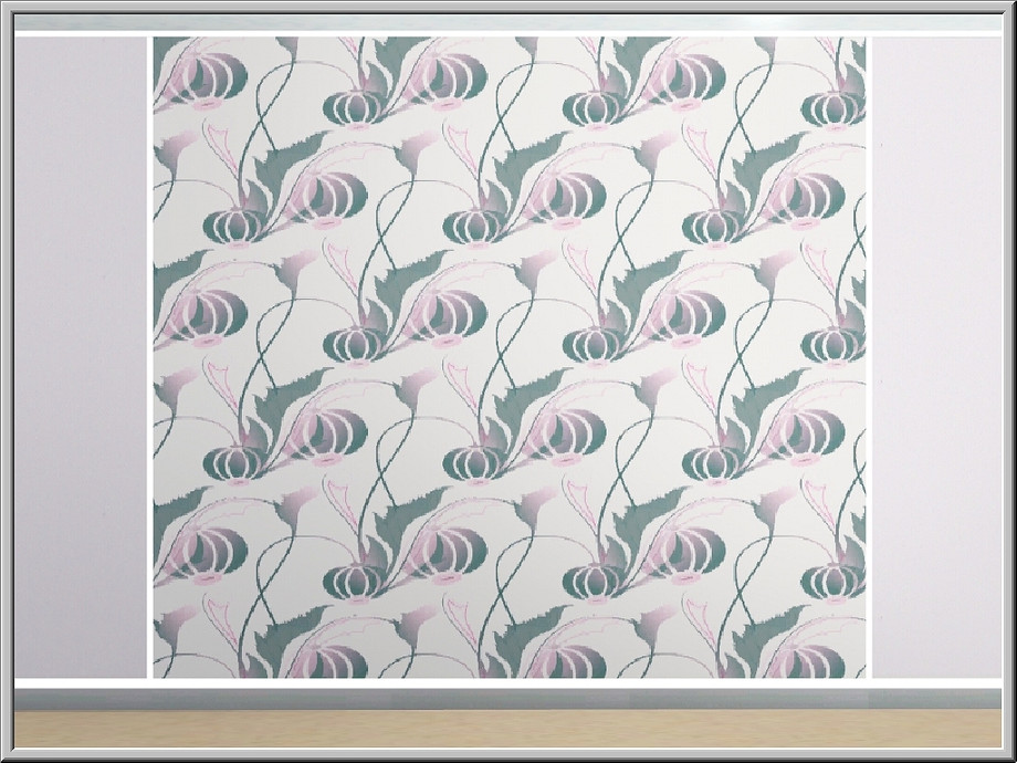 Fabric pattern: balloon flowers resembling Chinese lanterns, in sage with a hint of pink