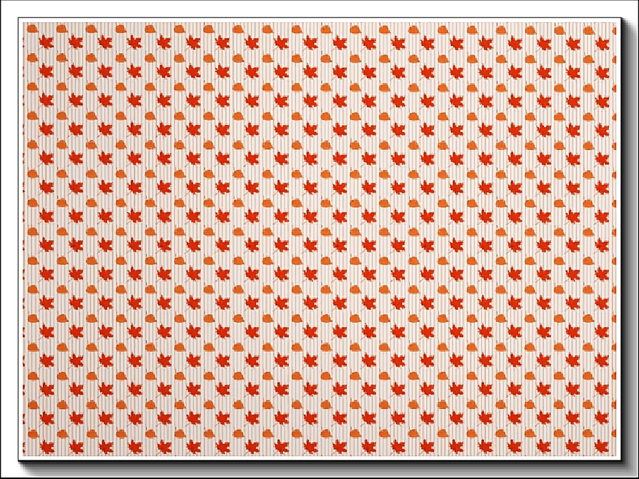 Fabric pattern: leaves in a checherboard design in red and orange