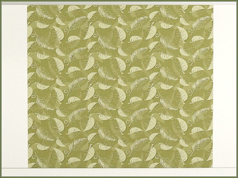 Leaves of various kinds in a textured Fabric pattern in olive green.