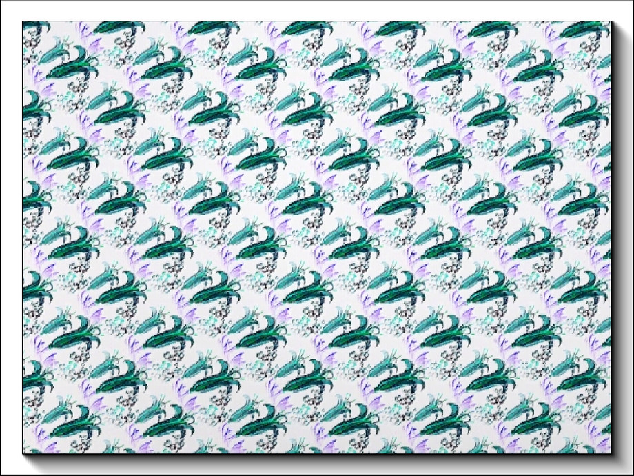 Fabric pattern_ diagonal lily pattern in blue on white