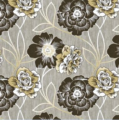 An older style wallpaper pattern in the cabbage rose style - this one almost monochromatic with only a touch of yellow.