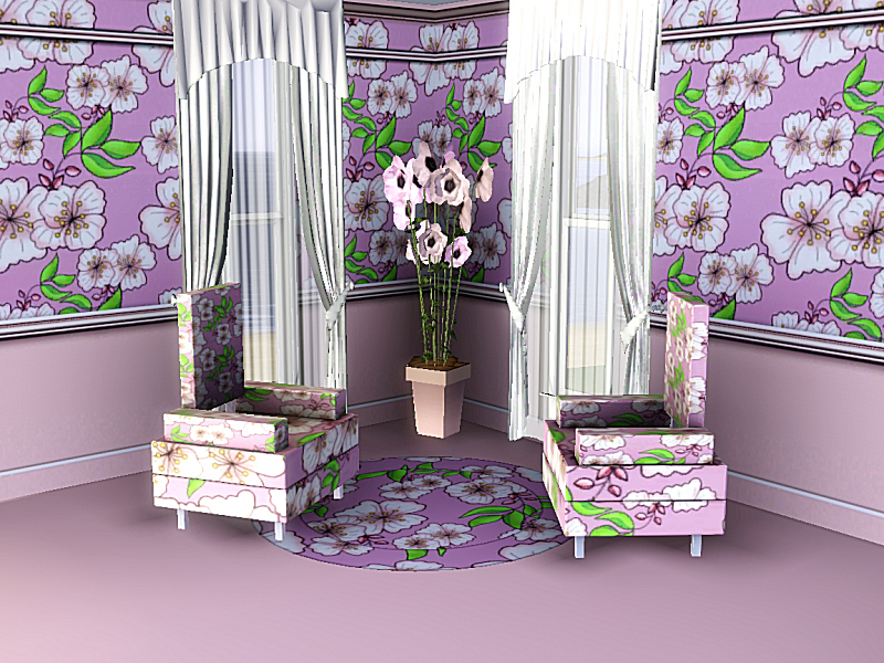 Credits: Chair:SugarBaby. Window:matomibotaki. Curtain:lulu. Flowers:FantasticSims
