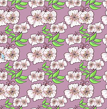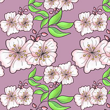 This large format pattern features the delightful pink blossoms and fresh green leaves of the apple tree