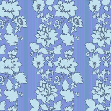 A pale blue floral string on a blue striped background making up this pretty vertical pattern.